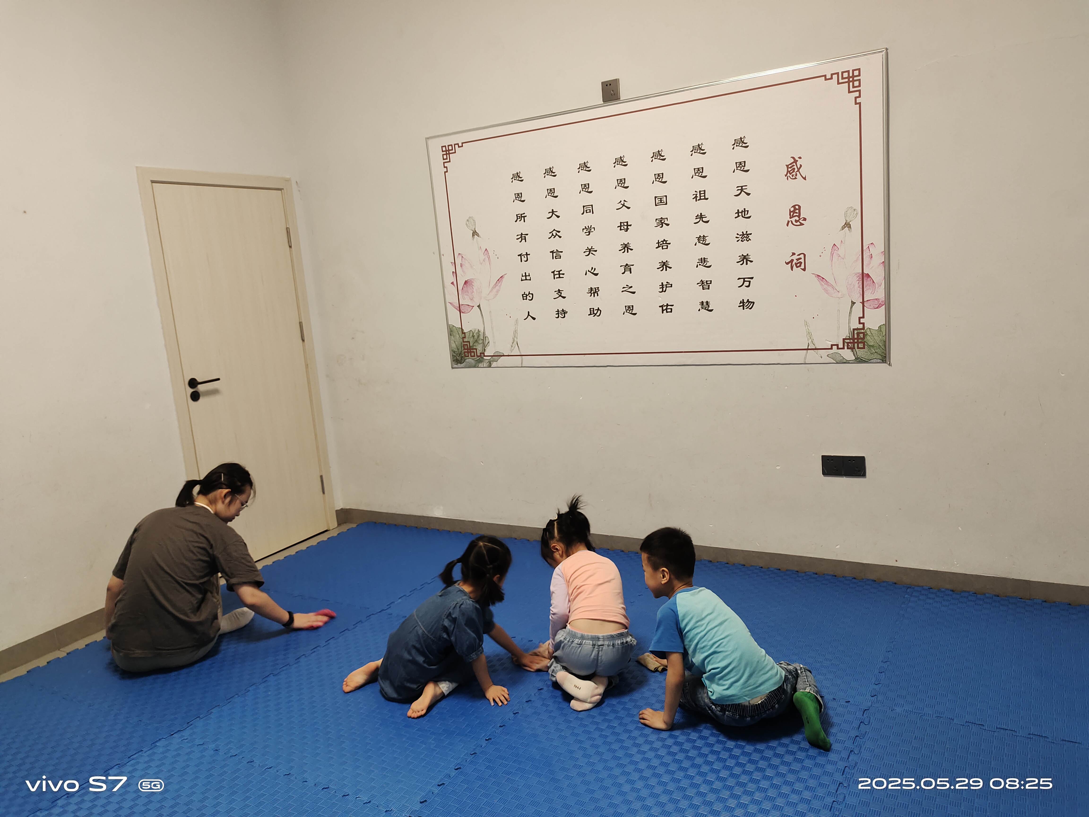 中心亲子园,为志愿者子孙及留守儿童开展国学经典《弟子规》教育。童蒙养正,扣好人生第一粒扣子。