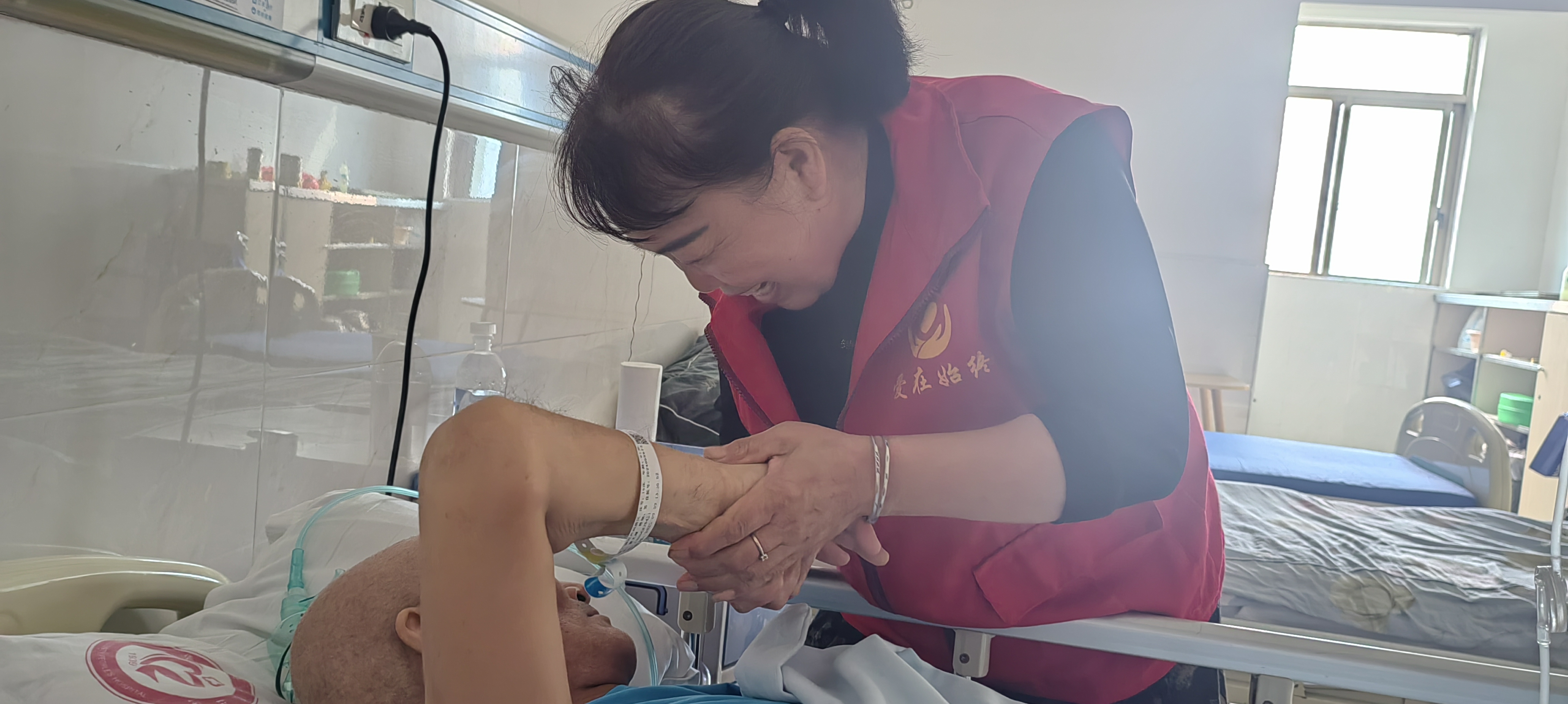 志愿者轮流照顾老人,安抚老人,擦洗身体,陪伴老人,祝福老人少点疼痛过好每一天。