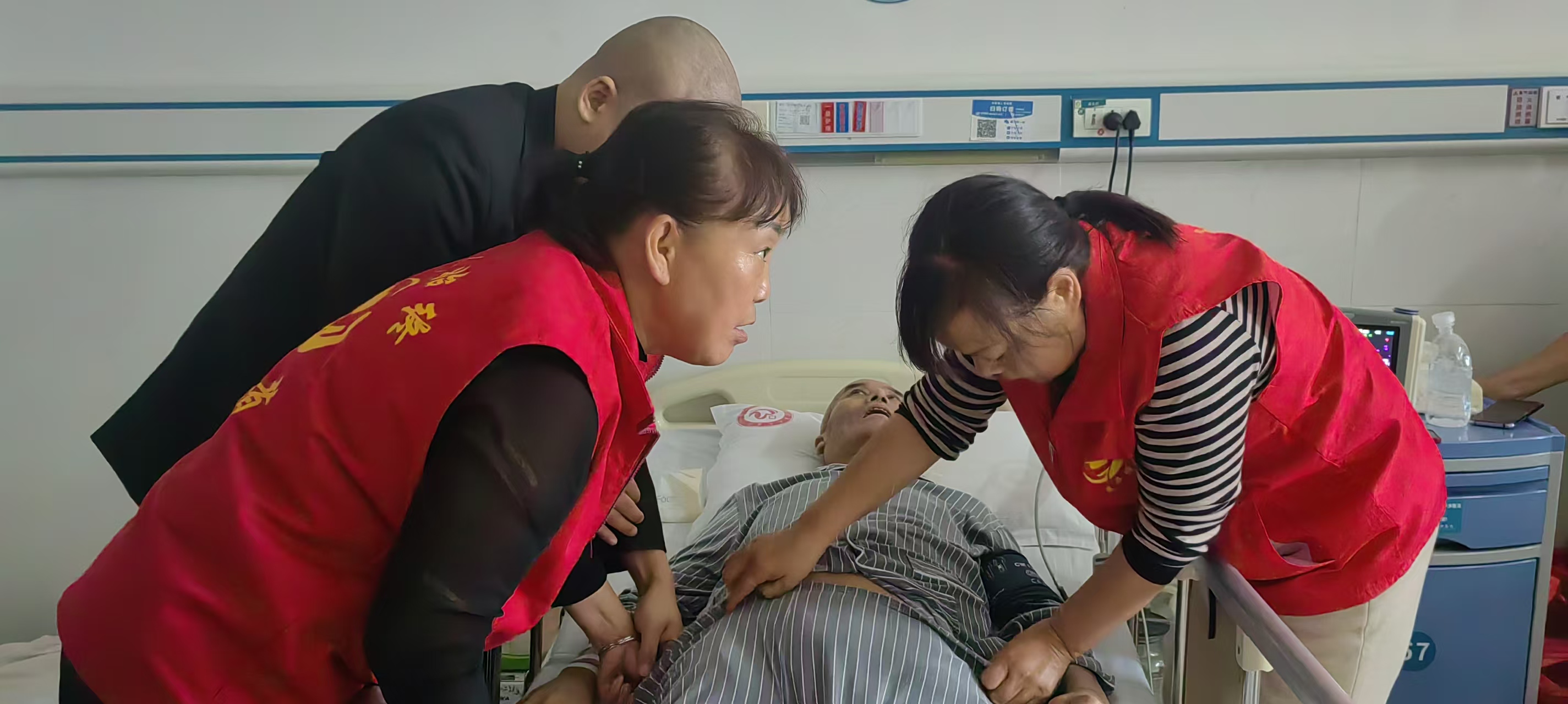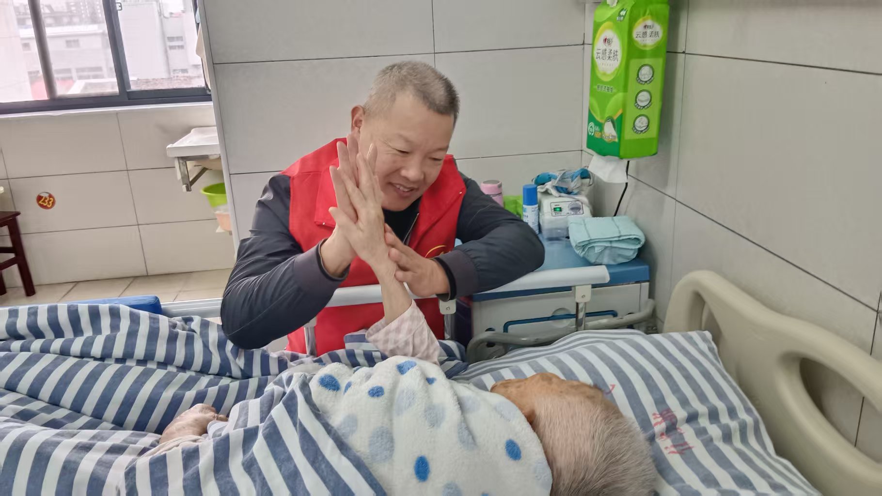 志愿者轮流照顾老人,擦洗身体,安抚陪伴老人,祝福老人没有疼痛过好每一天。