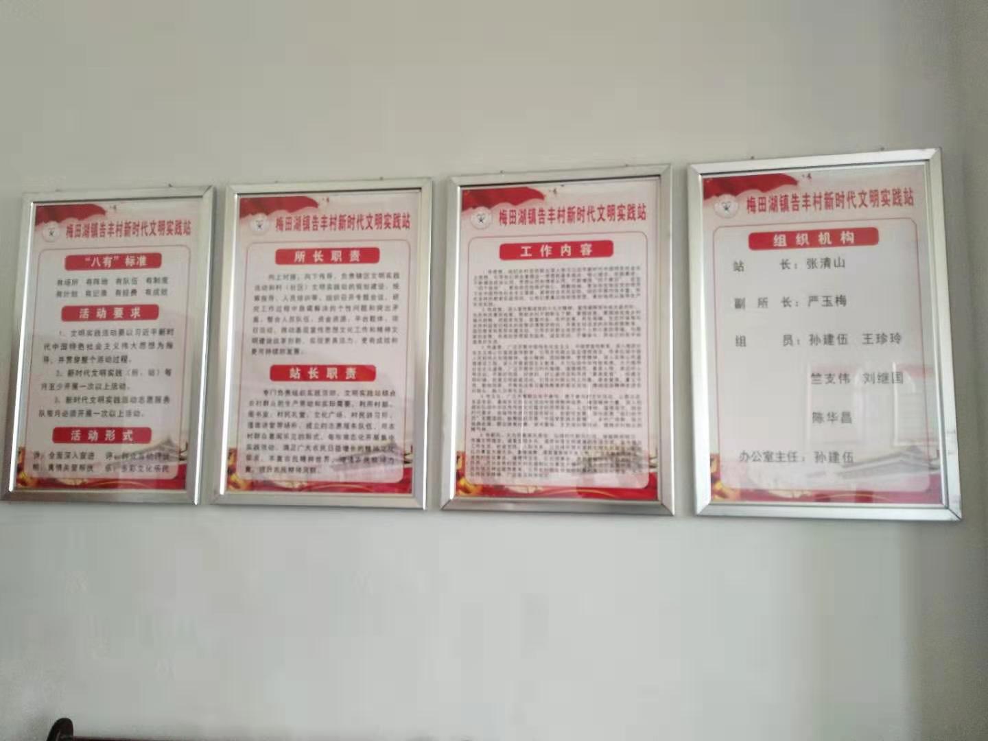 告丰村新时代文明实践站下设新时代文明实践广场1处、新时代创业奋斗实践点1处、新时代文明实践礼堂1处。工作执行机构为新时代文明实践理事会,下设4个文明实践小组,全村老百姓全部参与其中。理事会下设道德评议、科技服务、移风易俗、孝善传家、爱心扶老、文体艺术、矛盾调解等8个工作组。同时,成立了新时代文明实践志愿服务站,创新管理制度,明确志愿者的权利和义务,在全村形成了浓厚的志愿服务氛围。